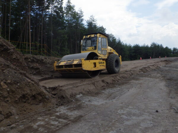 砂防ソイルセメント工法はいくつか種類があるのですが、今回は『転圧法』という方法を行っています。